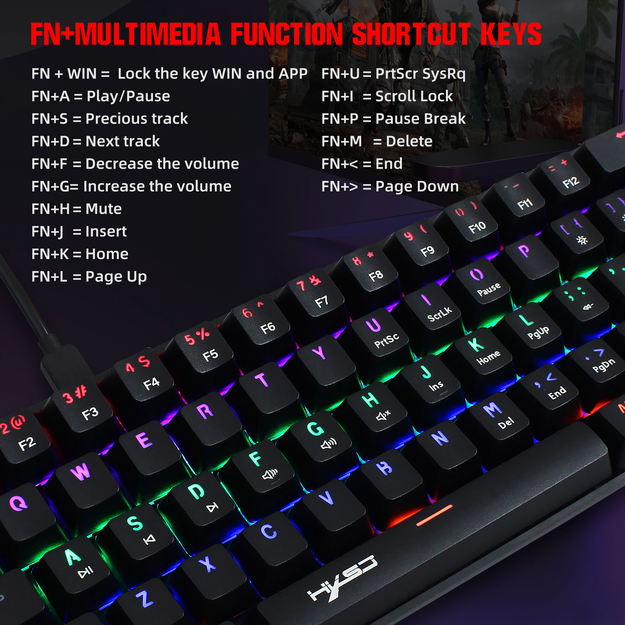 The keyboard has as many as 18 kinds of backlight modes, giving you a comfortable visual enjoyment at night. You can select your favorite backlit mode through the FN+ Backspace key.