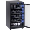 【USER FRIENDLY TOUCH CONTROLS】Easily set the humidity with the touch screen digital control panel. Anyone can easily adjust the humidity and change settings with a press of a button! LED lights inside the cabinet can be turn ON/OFF. Adjustable shelve design ensures enough space for additional shelves or largest and heaviest lenses