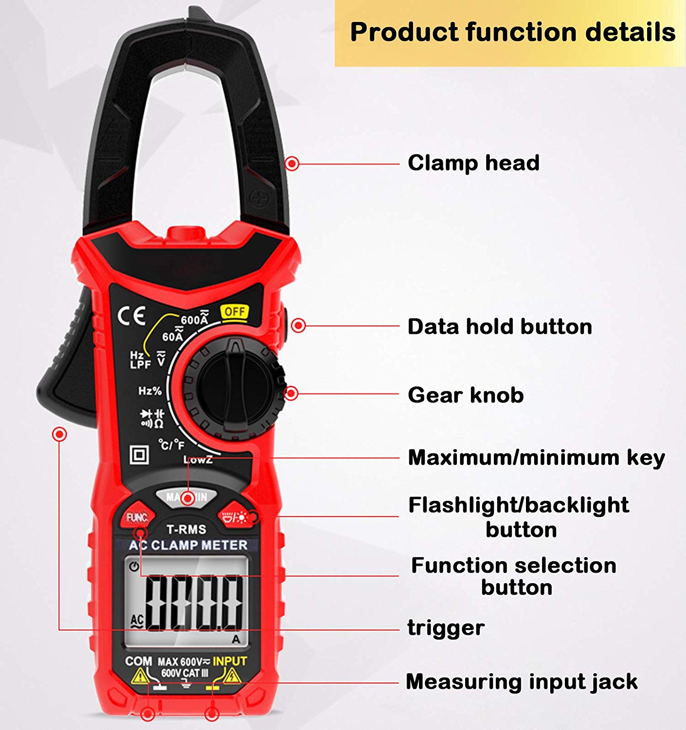 Multifunctional Clamp Meter with True RMS: Accurate AC/DC voltage, only for AC current (not for DC current), frequency, continuity, diode test, capacitance and resistance measurement. Automatically ranging true mean squared (TRMS) technology for increased accuracy.