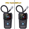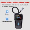 Audible & Visual Alarms, 2.6″ color screen. Alarms continuously with tone and LCD display change, show actual concentration when detecting gas leak. When the measurement value is above 12500 PPM or 25% LEL, the gas leak detector will alert with a red alarm indicator on the screen and a buzzer will sound. With backlight screen, temperature measure C/°F, low-battery indicator and auto power off after 10 minutes if there are no operation and measurement signal.