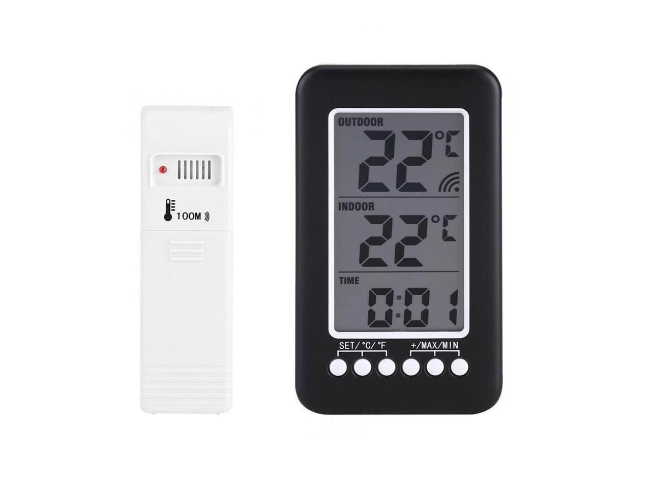 Indoor/Outdoor Thermometer, LCD Digital Indoor Outdoor Thermometer Clock Temperature Meter Wireless Transmitter