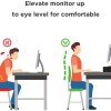- Ergonomic design keeps your monitor at comfortable eye level to effectively prevent your back and neck strain when you work in front of a computer, protecting your cervical spine, decompressing your waist and contributing to improve your daily working productivity.