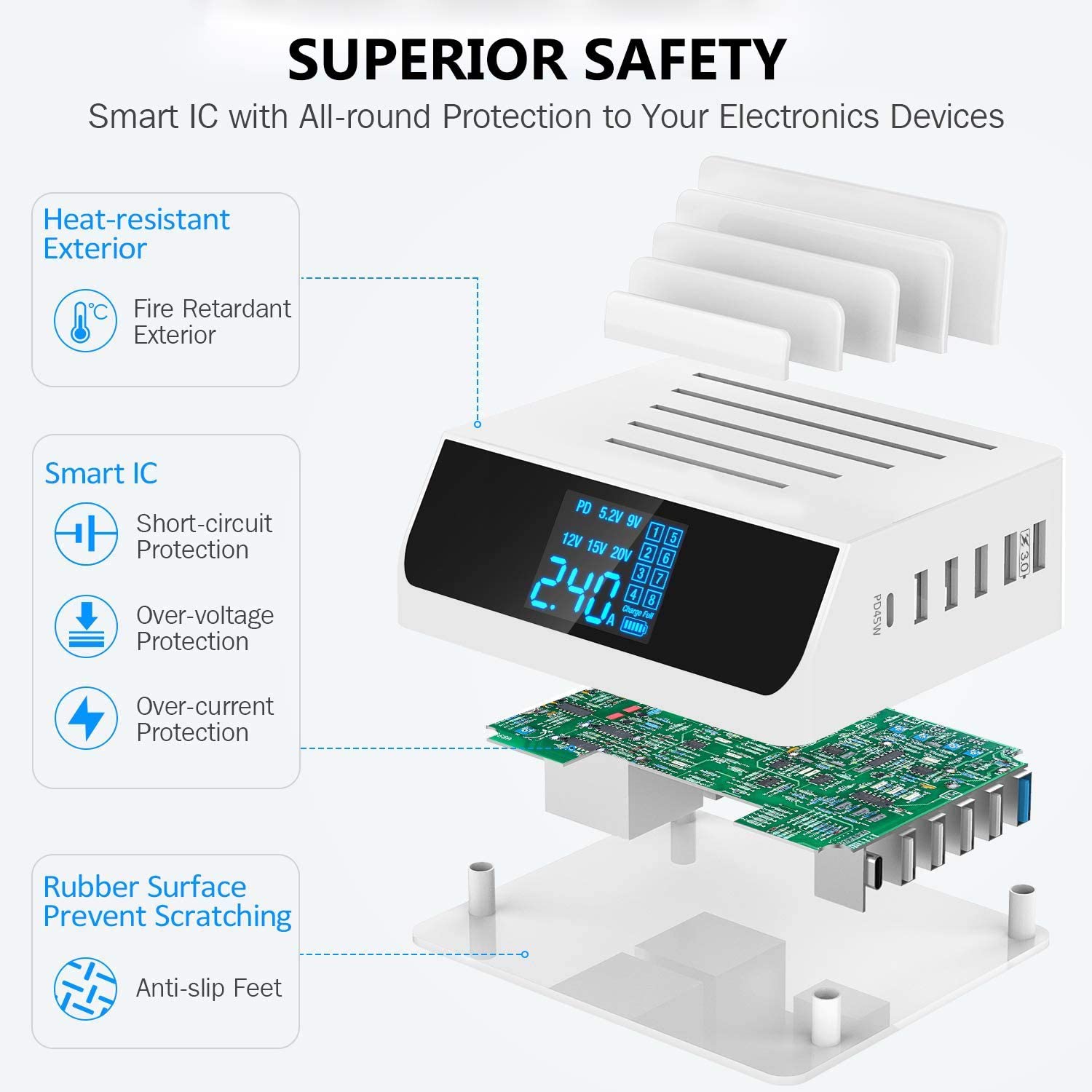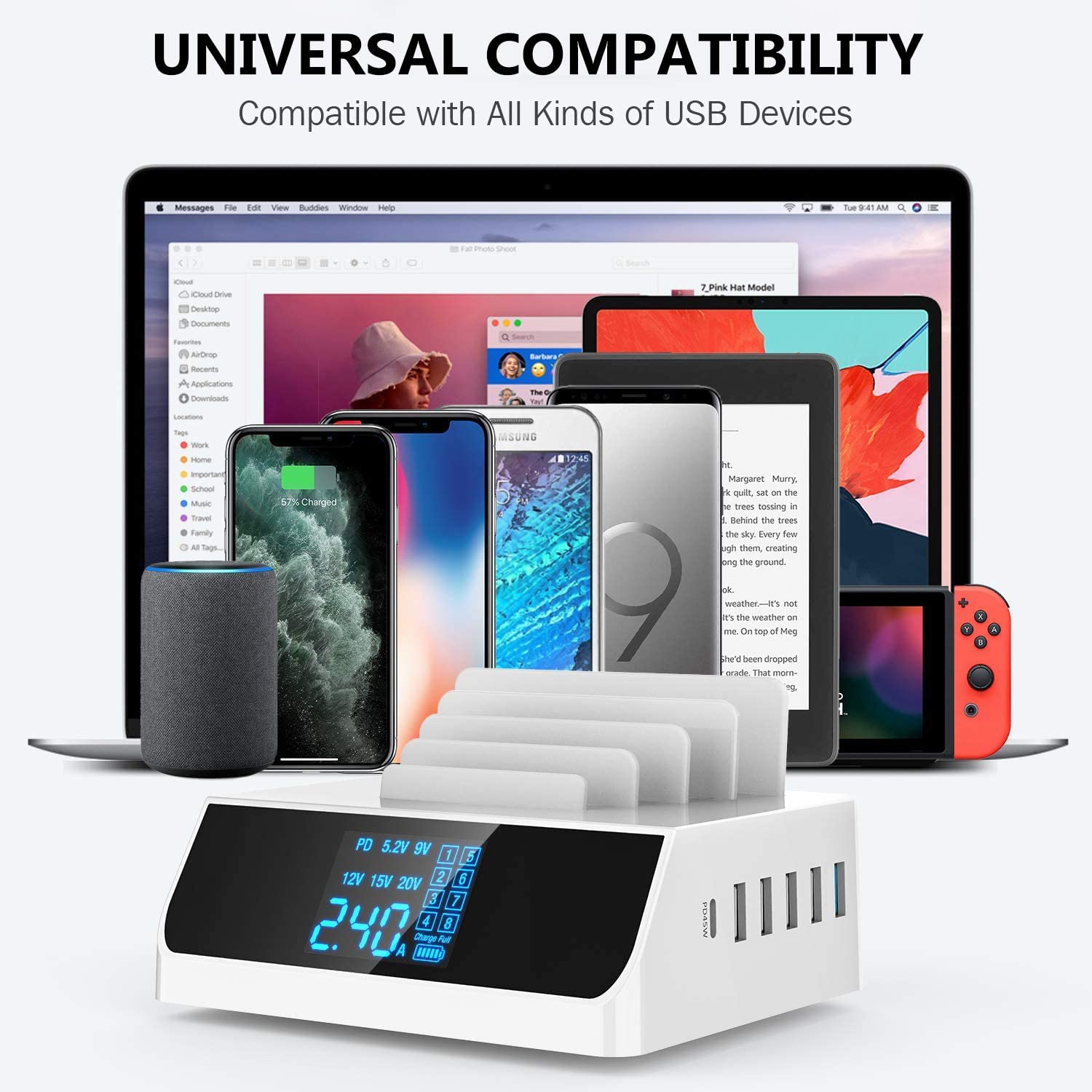 USB C PD 45W Charging Station, 100W 6-Port Desktop Charger Hub Dock for iPad iPhone MacBook Android Phone Tablets Laptop